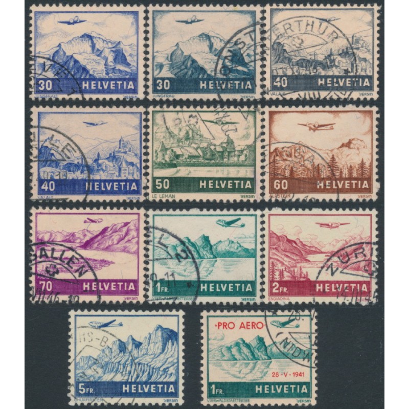 SWITZERLAND - 1941 Airmail set of 11, used – Michel # 387-395+506-507