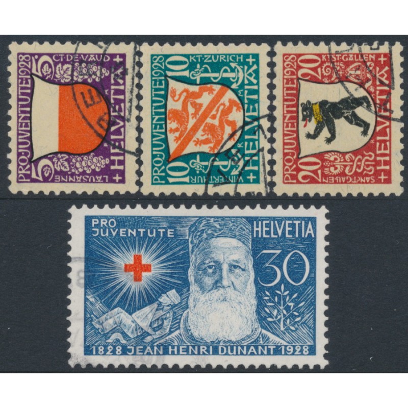 SWITZERLAND / SCHWEIZ / SUISSE / SVIZZERA 1928 Pro Juventute set of 4, used – no thins, tears or bends. Zumstein Cat. # WI45-WI48 Michel Cat. # 229-232