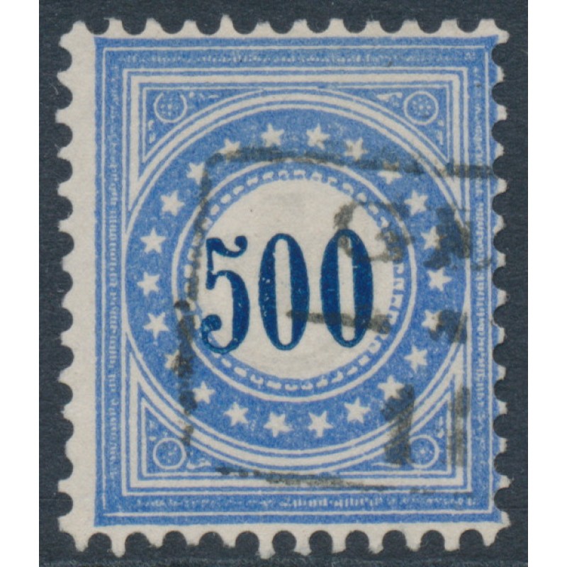 SWITZERLAND - 1878 500c blue/ultramarine Postage Due (upright frame type I), used – Mi # P9INa