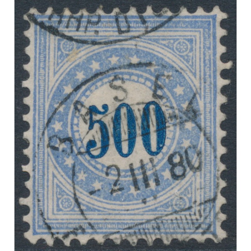 SWITZERLAND - 1878 500c blue/grey-blue Postage Due (upright frame type I), used – Mi # P9INaa