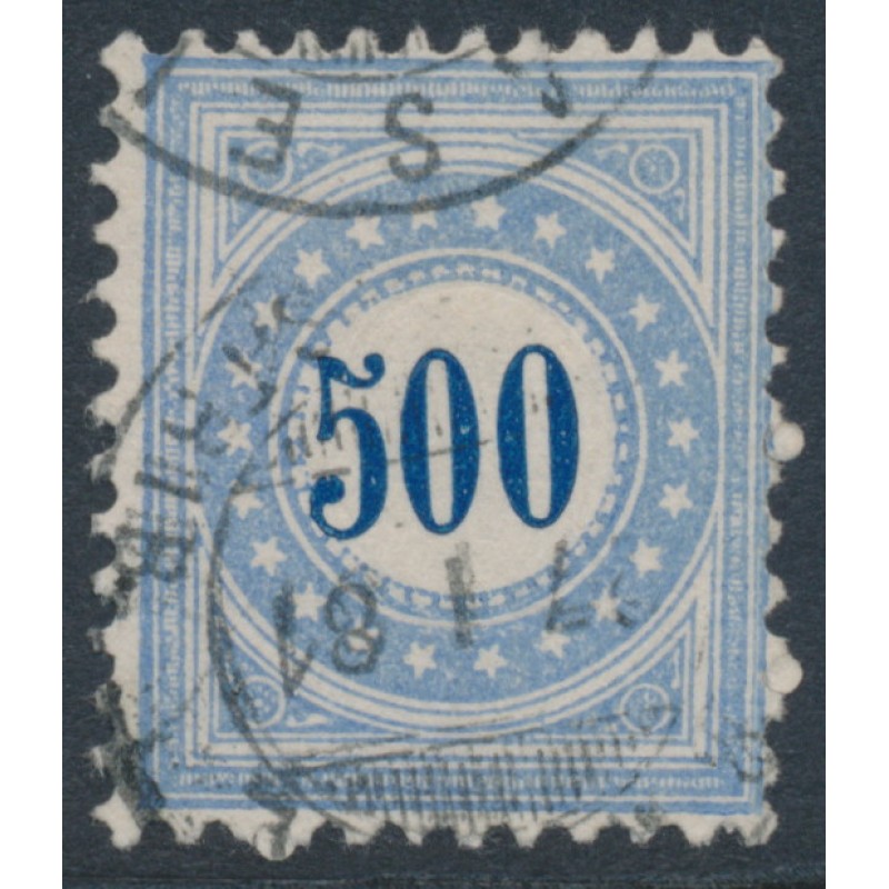 SWITZERLAND - 1878 500c blue/grey-blue Postage Due (inverted frame type I), used – Mi # P9IKaa