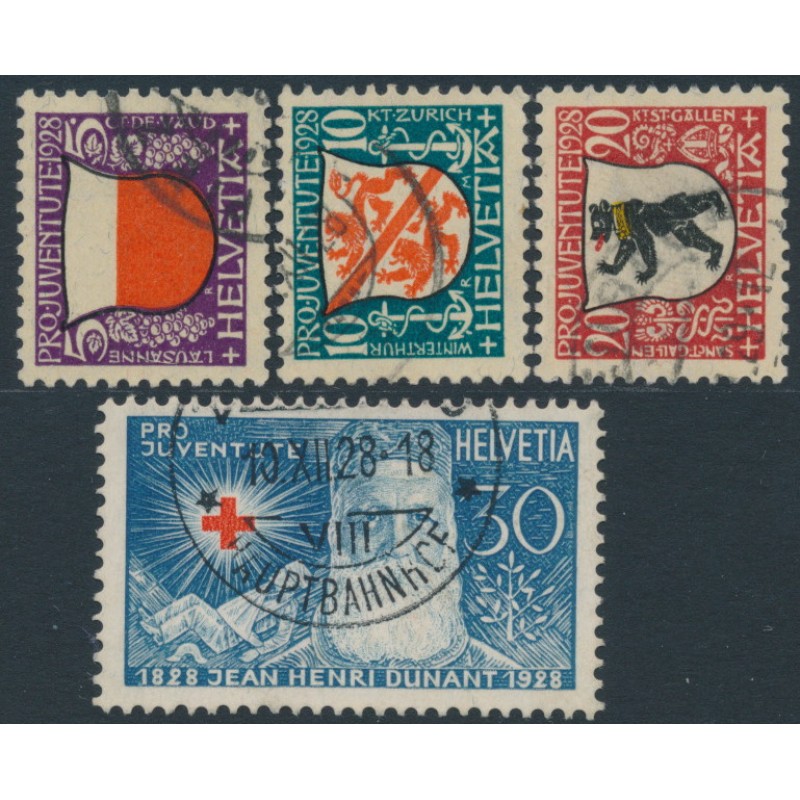 1928 Pro Juventute set of 4, used – no thins, tears or bends.