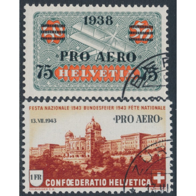 SWITZERLAND - 1938 & 1943 Pro Aero issues, CTO – Michel # 325+422