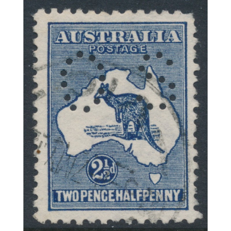 AUSTRALIA - 1913 2½d indigo Kangaroo, 1st watermark, perf. small OS, used – ACSC # 9Abb