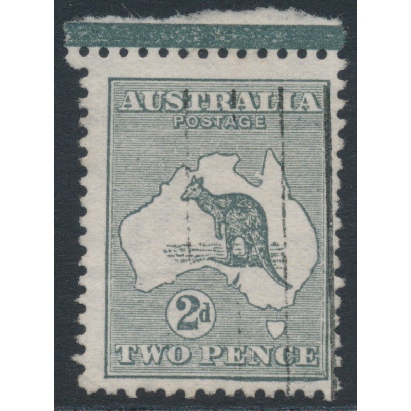AUSTRALIA - 1913 2d grey Kangaroo, 1st watermark, 'flaw in Gulf' [1L6], used – ACSC # 5A(1)d