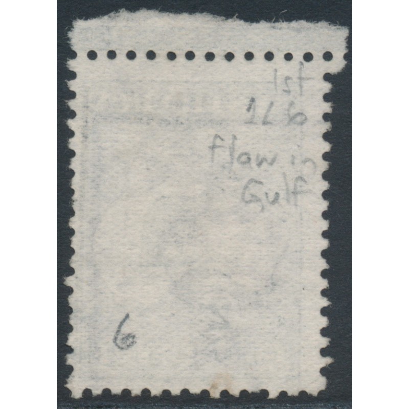 1913 2d grey Kangaroo, 1st watermark, with the variety ‘white flaw in Gulf of Carpentaria’ [position = 1L6], used – has a bent corner perforation, otherwise sound.