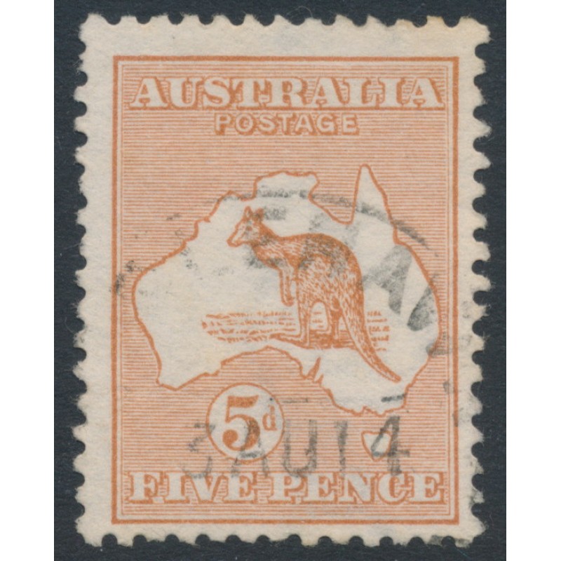 AUSTRALIA 1913 5d pale chestnut Kangaroo, 1st watermark, used – no thins, tears or bends. BW(ACSC) Cat. # 16B SG Cat. # 8