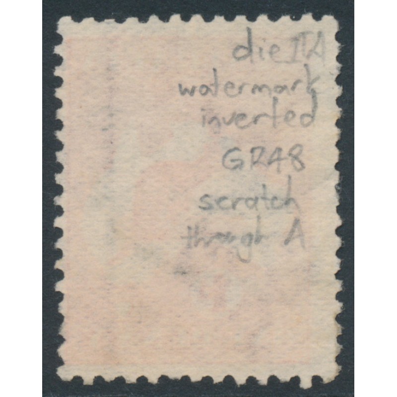AUSTRALIA - 1914 1d red Kangaroo, die IIA, inverted wmk + variety [GR48], used – ACSC # 4C(G)n+a
