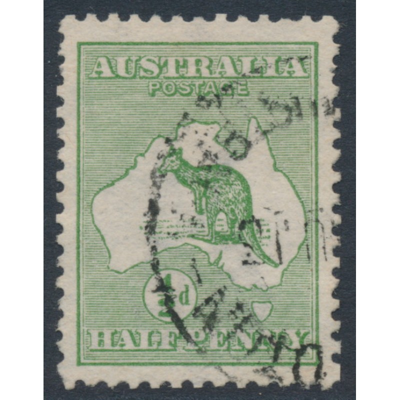 AUSTRALIA - 1913 ½d green Kangaroo, inverted 1st watermark, used – ACSC # 1Aa