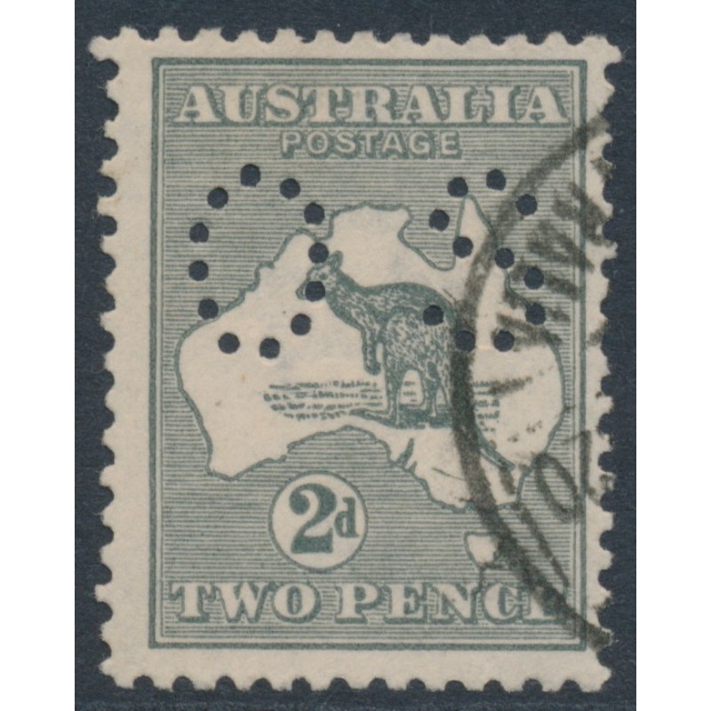 1915 2d grey Kangaroo, die I, 3rd watermark, perforated OS, used – no thins, tears or bends.