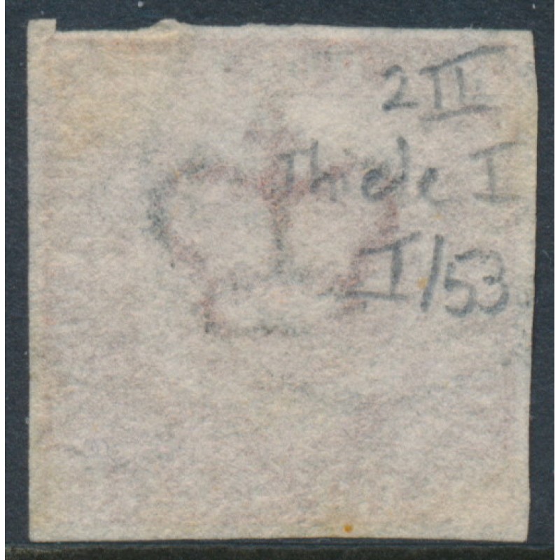 1852 4RBS red-brown Crown (Thiele I printing), imperforate, has the variety ‘thin POST and retouched shading under POST’ [position = I/53], used – no thins, tears or bends.