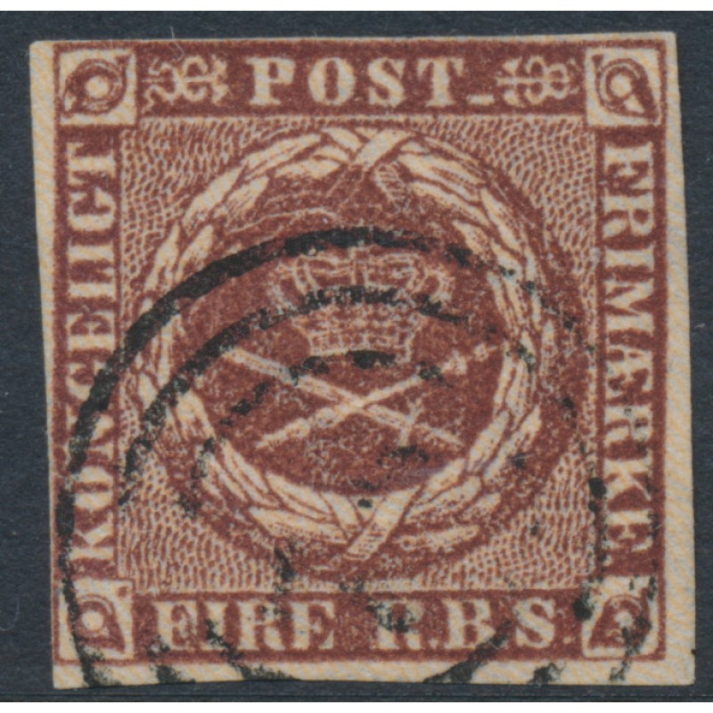 DENMARK / DANMARK 1852 4RBS red-brown Crown (Thiele I printing), imperforate, used – no thins, tears or bends. Facit Cat. # 2II Michel Cat. # 1IIa