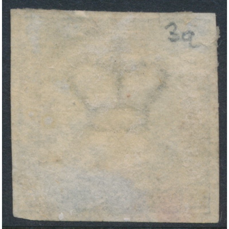DENMARK - 1855 2Sk light blue Crown, imperforate, used – Facit # 3a