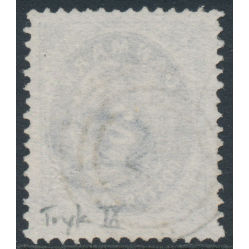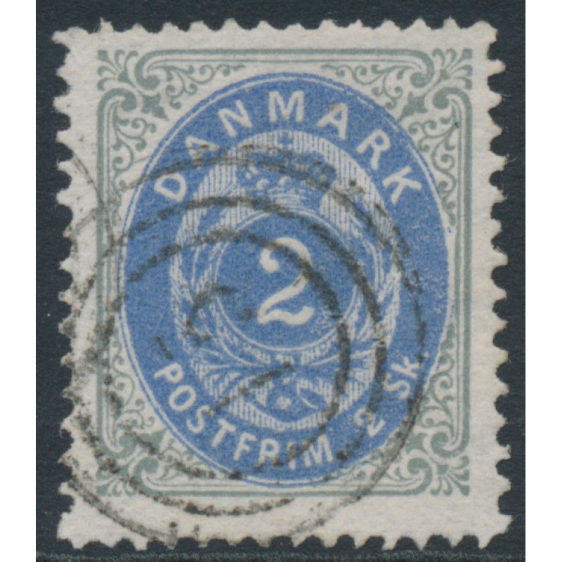 DENMARK - 1871 2Sk ultramarine/grey Numeral, perf. 14:13½, used – Facit # 20i