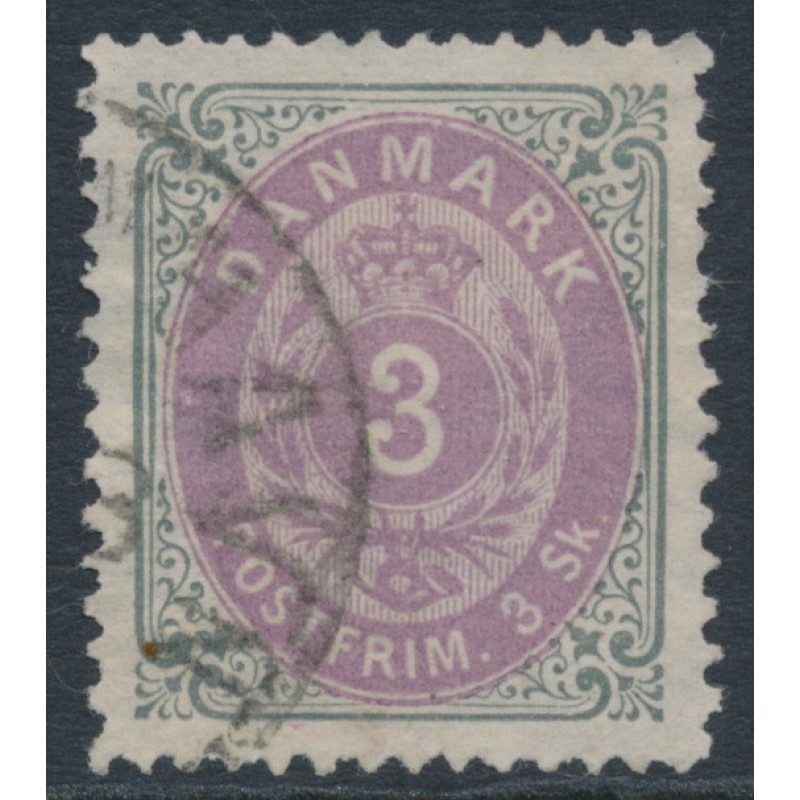 DENMARK / DANMARK 1871 3Sk lilac/grey Numeral, perf. 14:13½, used – no thins, tears or bends. Facit Cat. # 21b Michel Cat. # 17IAa