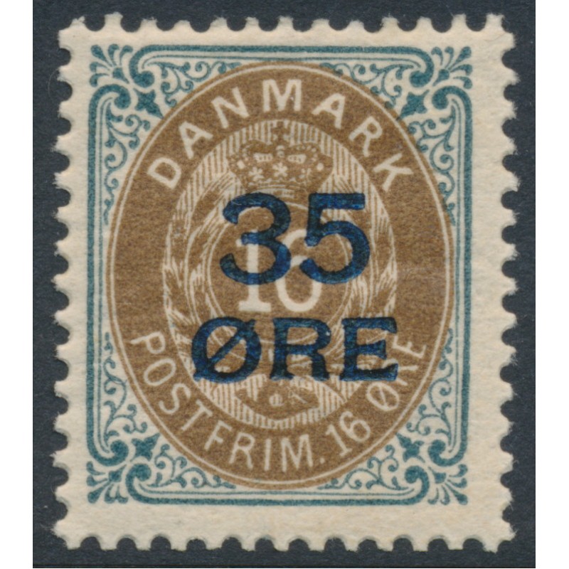 DENMARK / DANMARK 1912 35øre on 16øre grey-brown Numeral, mint hinged – no thins, tears or bends. Facit Cat. # 47 Michel Cat. # 60I
