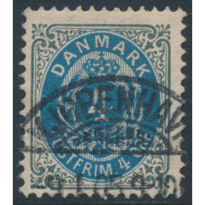 DENMARK / DANMARK 1903 4øre blue/grey Numeral, perf. 12¾:12¾, type III crown watermark, used – no thins, tears or bends. Facit Cat. # 39b Michel Cat. # 23IZBb