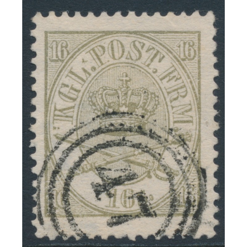 1864 16Sk greenish dark grey Crown, perf. 13:12½, used – has a '47' numeral cancel (= Nykøbing), no thins, tears or bends.