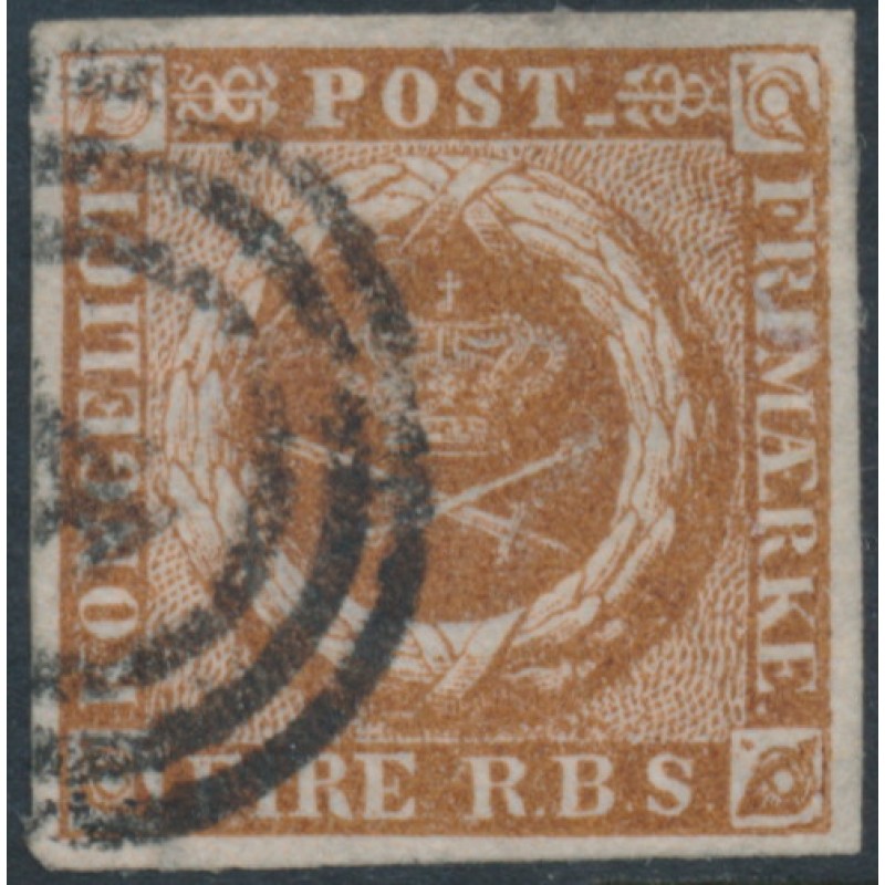 1854 4RBS yellow-brown Coat of Arms (Thiele III printing), used – no thins, tears or bends.