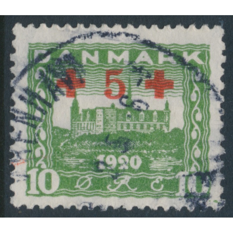 DENMARK / DANMARK 1921 10øre + 5øre green Red Cross overprint, used – no thins, tears or bends. Facit Cat. # 199 Michel Cat. # 116