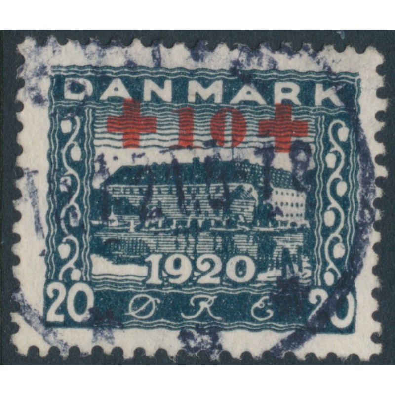 DENMARK / DANMARK 1921 20øre + 10øre deep blue Red Cross overprint, used – no thins, tears or bends. Facit Cat. # 200 Michel Cat. # 117