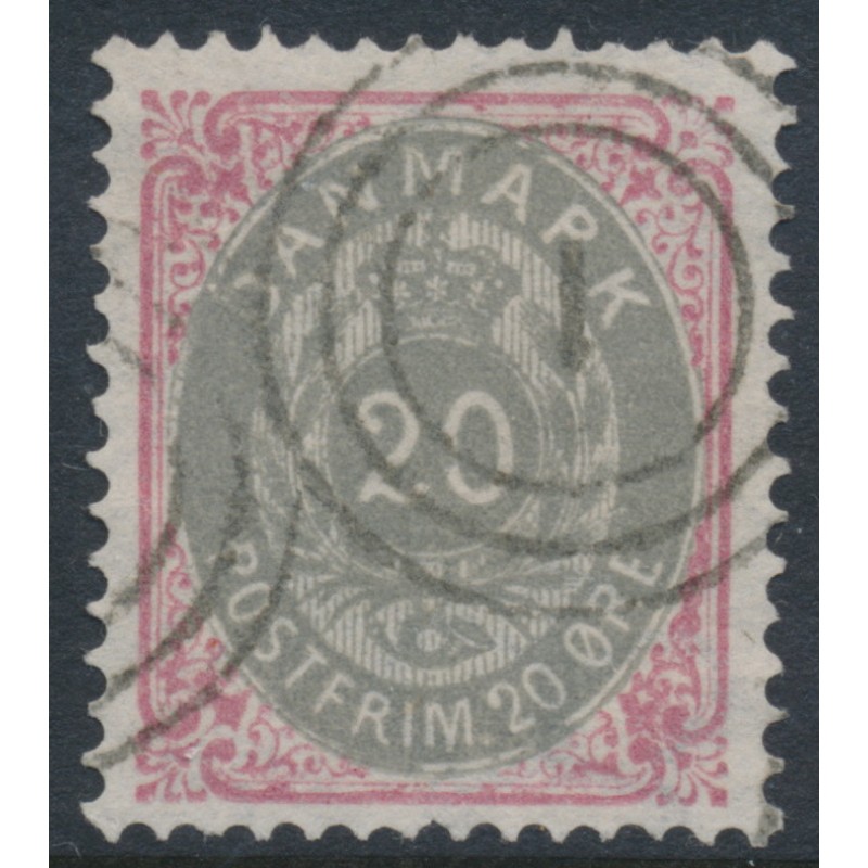DENMARK - 1875 20øre grey/rose Numeral, perf. 14:13½, inverted frame, used – Facit # 34a