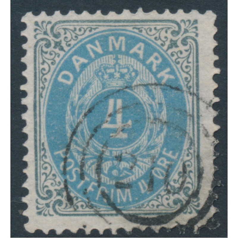 DENMARK - 1875 4øre dull blue/grey Numeral, perf. 14:13½, used – Facit # 29c