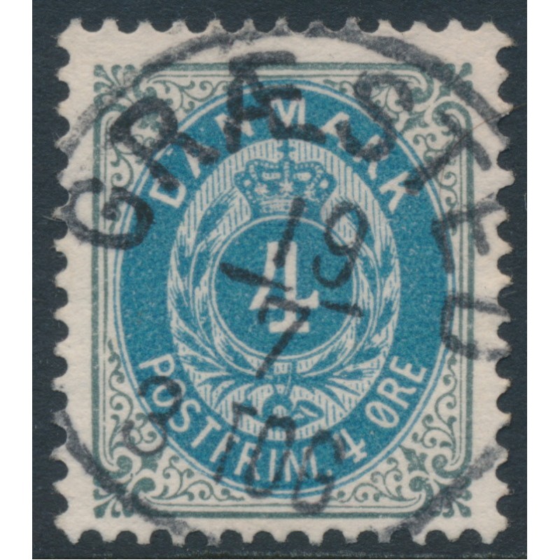 DENMARK - 1895 4øre blue/grey Numeral, perf. 12¾, inverted frame, used – Facit # 39aa