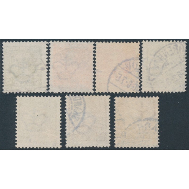 DENMARK / DANMARK 1904-1906 5øre to 100øre King Christian IX set of 7, used – no thins, tears or bends. Facit Cat. # 63-68 + 64b Michel Cat. # 47-52 + 48II