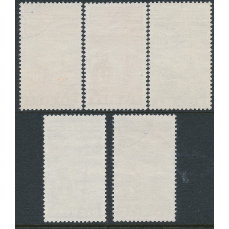 DENMARK / DANMARK 1934 10øre to 1Kr Airmail set of 5, used – no thins, tears or bends. Facit Cat. # 262-266 Michel Cat. # 217-221