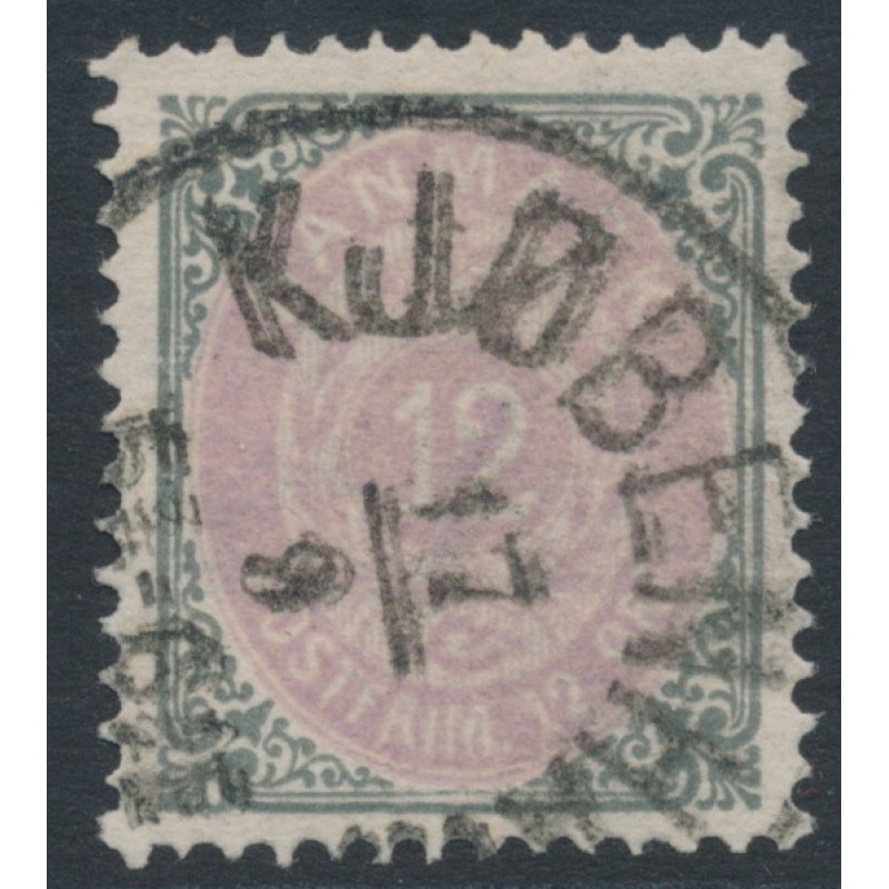 DENMARK / DANMARK 1875 12øre purple-lilac/green-grey Numeral, perf. 14:13½, used – no thins, tears or bends. Facit Cat. # 32d Michel Cat. # 26IYAa