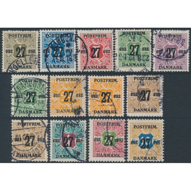 DENMARK - 1918 27øre overprints on Newspaper Stamps (Avisporto) set of 13, used – Facit # 181-193