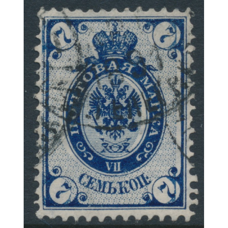 RUSSIA 1889 7Kop blue Coat of Arms, horizontally laid paper, with misplaced background underprint, used – no thins, tears or bends. Michel Cat. # 49x SG Cat. # 55