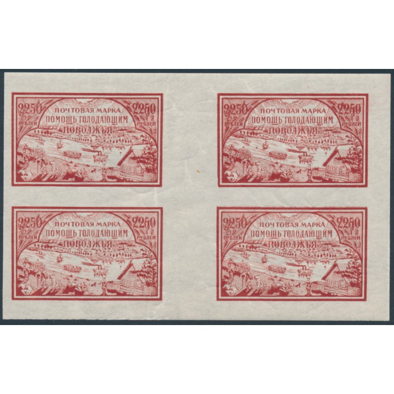 RUSSIA - 1921 2250R carmine Volga Relief issue, gutter block of 4, MNH – Michel # 167