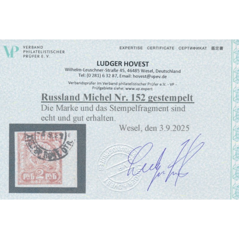 RUSSIA / РОССИЯ 1921 2R pale brown Agriculture, used – no thins, tears or bends. Has a Hovest photo-certificate. Michel Cat. # 152a SG Cat. # 196
