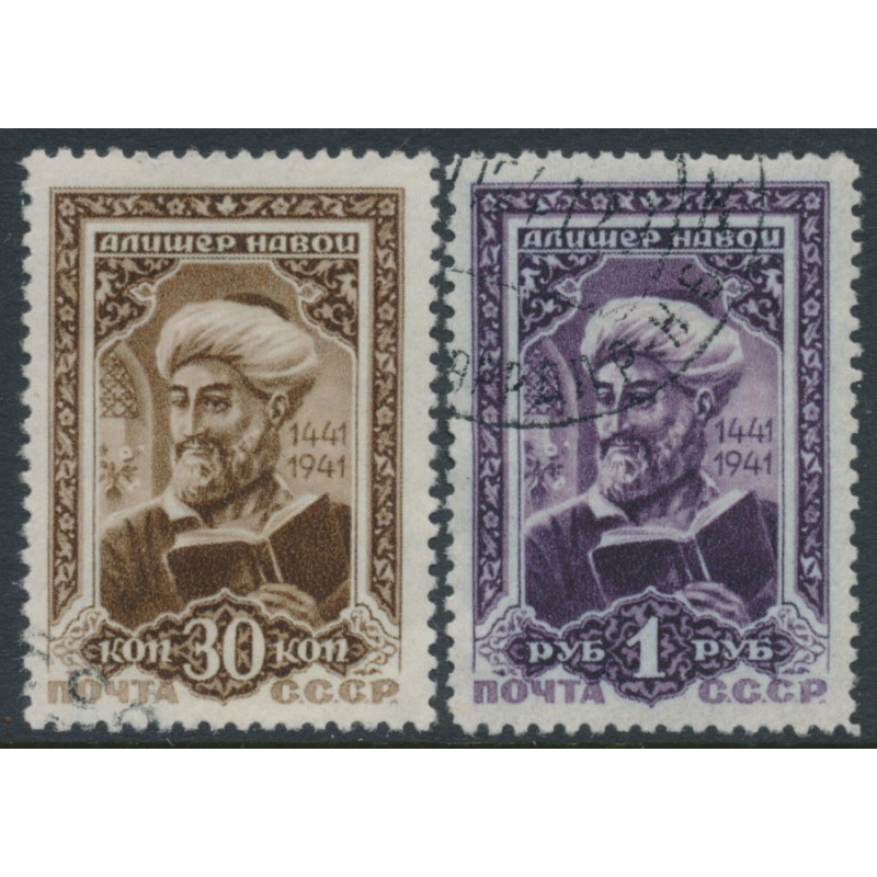 RUSSIA / U.S.S.R. / SOVIET UNION / РОССИЯ 1942 30K brown & 1R deep violet Navoi set of 2, used – no thins, tears or bends. Michel Cat. # 827-828 SG Cat. # 985a + 986
