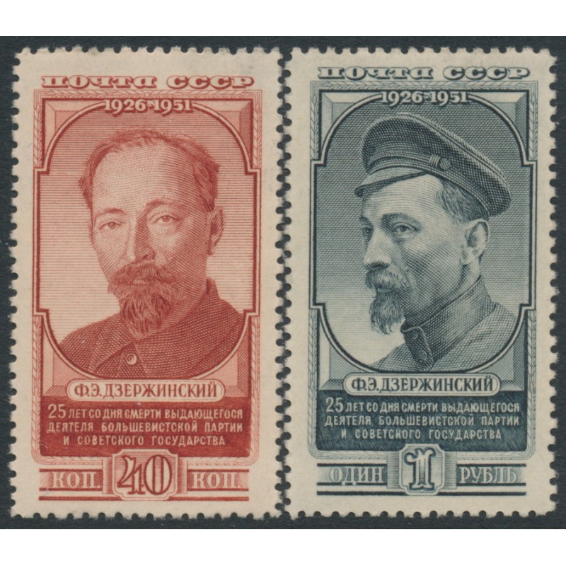 RUSSIA / U.S.S.R. / SOVIET UNION / РОССИЯ 1951 40K red-brown & 1R black Dzerzhinsky set of 2, mint hinged – no thins, tears or bends. Michel Cat. # 1573-1574 SG Cat. # 1705-1706