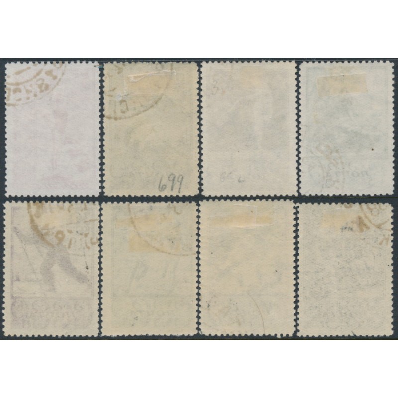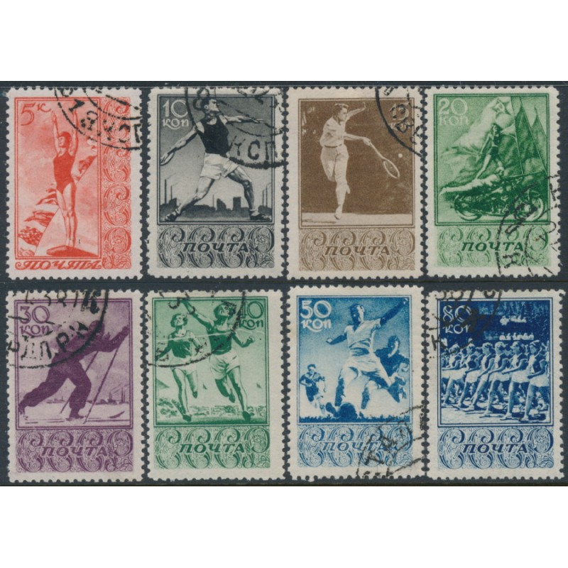 RUSSIA / U.S.S.R. / SOVIET UNION / РОССИЯ 1938 5K to 80K Sports in the USSR set of 8, used – no thins, tears or bends. Michel Cat. # 657-654 SG Cat. # 830-837