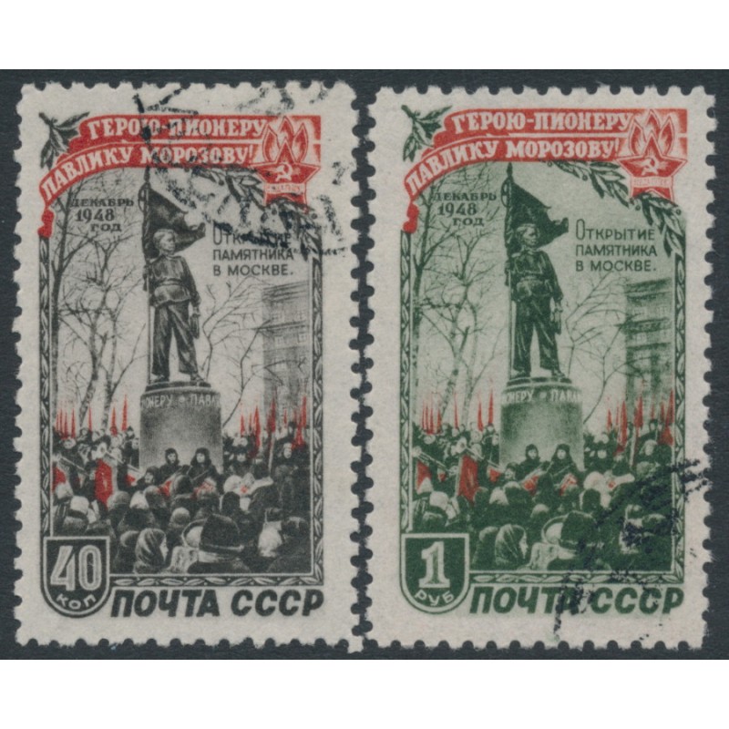 1950 40K black/red & 1R green/red Morozov Memorial set of 2, used – no thins, tears or bends.