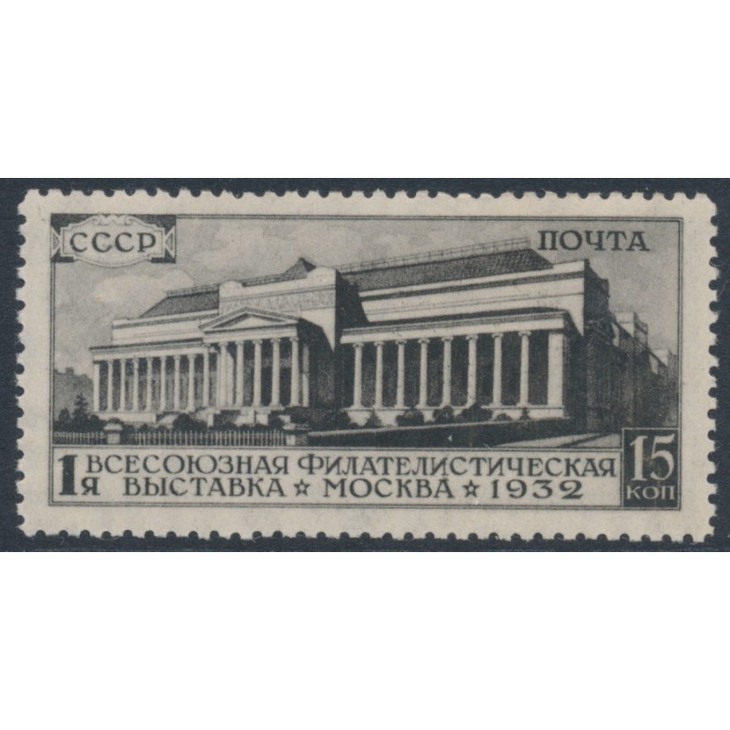 RUSSIA / U.S.S.R. / SOVIET UNION / РОССИЯ 1932 15Kop deep brown Moscow Stamp Exhibition, mint hinged – no thins, tears or bends. Michel Cat. # 422AX SG Cat. # 601