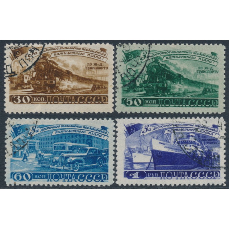 1948 30Kop to 1R Five Year Plan (Transport) set of 4, used – no thins, tears or bends.