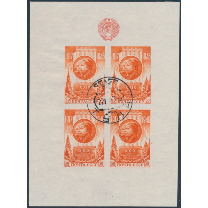 1947 29th Anniversary of the October Revolution M/S, used – no thins, tears or bends.