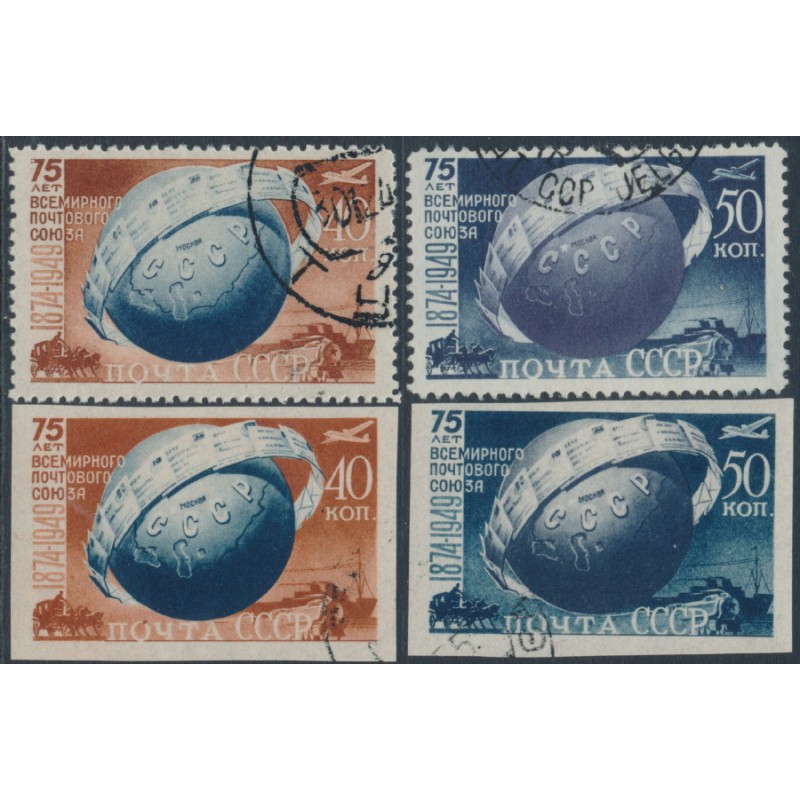 RUSSIA / USSR - 1949 UPU Anniversary sets of 2, perf. & imperf., used – Michel # 1383-1384