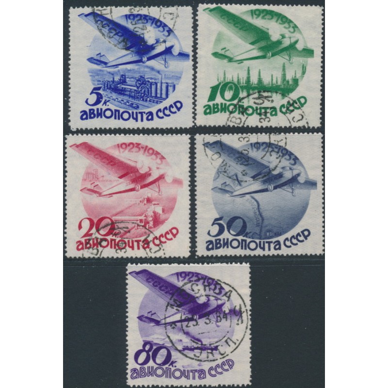 RUSSIA / USSR - 1933 Civil Aviation set of 5, with watermark, used – Michel # 462Y-466Y