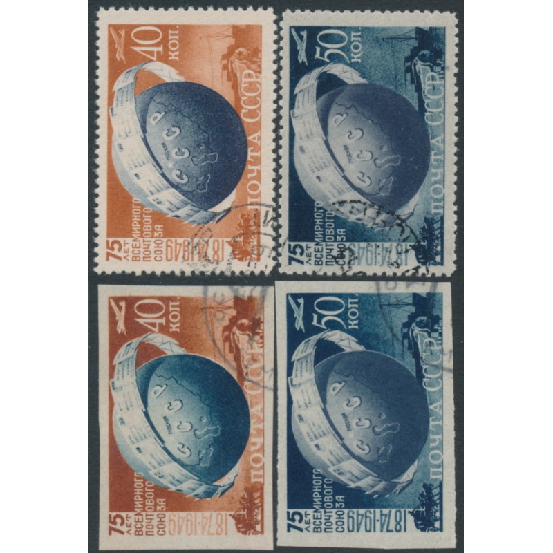 RUSSIA / USSR - 1949 UPU Anniversary sets of 2, perf. & imperf., used – Michel # 1383-1384