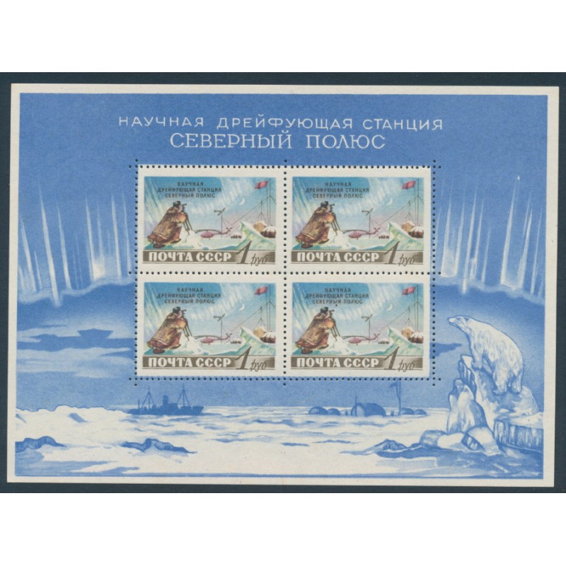 RUSSIA / U.S.S.R. / SOVIET UNION / РОССИЯ 1958 Nordpol Station M/S, mint never hinged – no thins, tears or bends. Michel Cat. # Block 27 SG Cat. # MS1926a