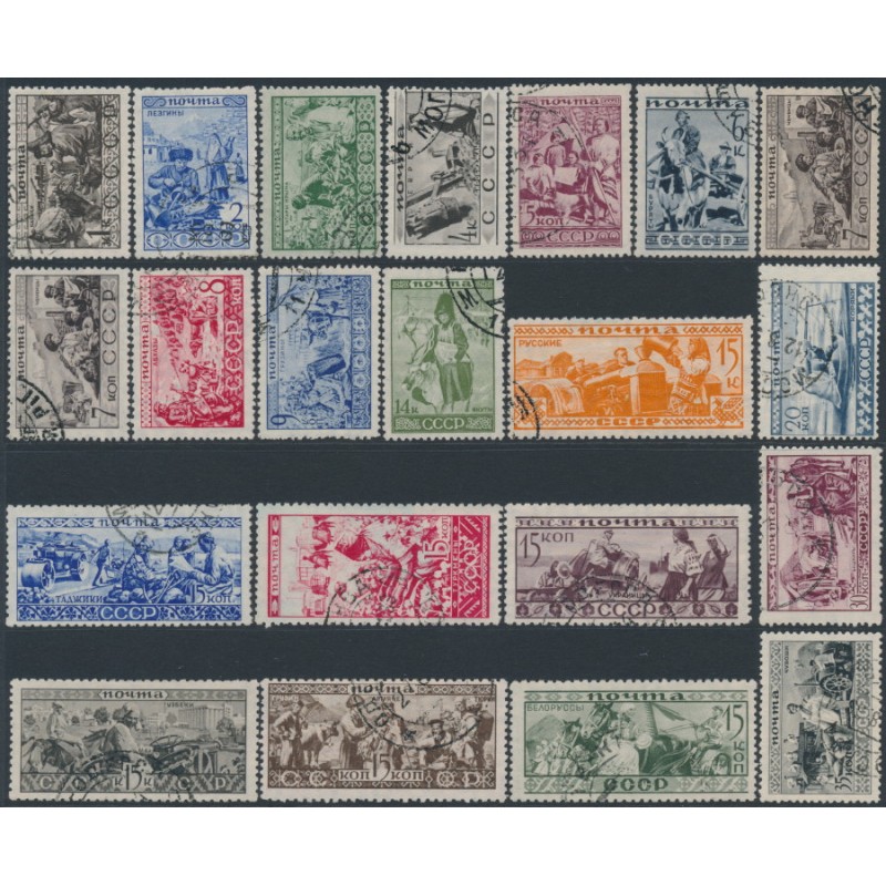 1933 1K to 35K Peoples of the USSR set of 21, used – no thins, tears or bends.