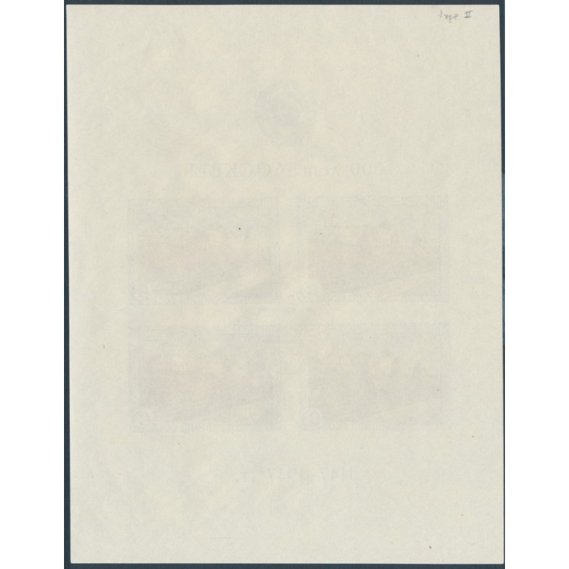 1947 Anniversary of the City of Moscow M/S, 1956 re-issue (the 800 ЛЕТ МОСКВЫ inscription at the top is 60mm long and the distance between this and the 1147-1947 inscription at the base is 91mm), used – no thins, tears or bends.