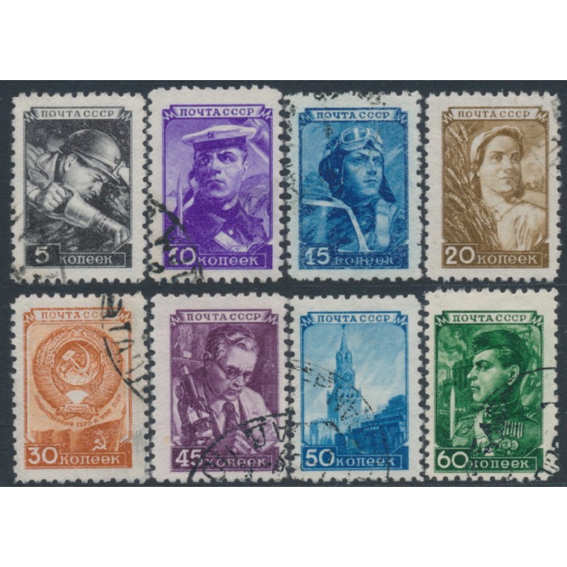 RUSSIA / U.S.S.R. / SOVIET UNION / РОССИЯ 1948 5Kop to 60Kop Definitives set of 8, used – no thins, tears or bends. Michel Cat. # 1203-1211 SG Cat. # 1354-1361