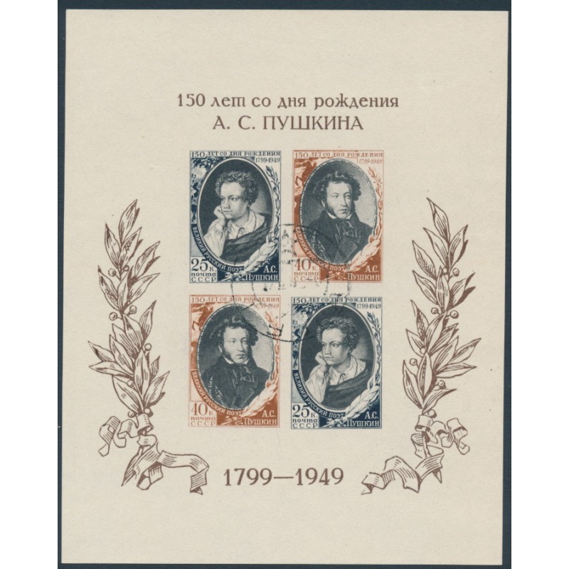 RUSSIA / U.S.S.R. / SOVIET UNION / РОССИЯ 1949 Alexander Pushkin Anniversary M/S, used – no thins, tears or bends. Michel Cat. # Block 12 SG Cat. # MS1492a